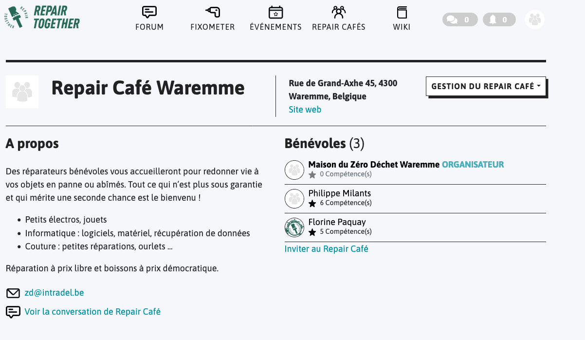 Thank you for the info. I moved to recently created Repair Café Waremme where I already started to fill in the repair data.